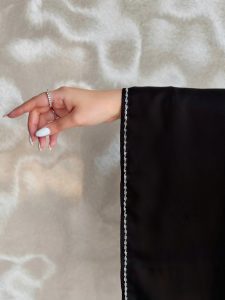 • حریر مشکی اعلا: حریر یکی از رایج‌ترین انتخاب‌ها برای شال‌های مجلسی است. بافت سبک و شفاف حریر، به آن ویژگی درخشش طبیعی می‌دهد و به‌ویژه در مجالس رسمی، جلوه‌ای جذاب ایجاد می‌کند. حریر اعلا به‌دلیل تراکم بالای بافت، پوشش مناسبی فراهم می‌کند و با عباهای کرپ یا سایر پارچه‌های مات تضاد زیبایی ایجاد می‌نماید.